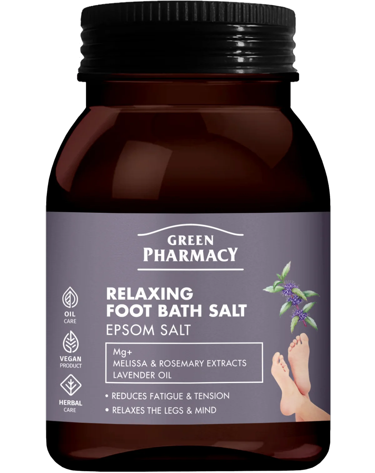Koupel na nohy s relaxační solí Green Pharmacy představuje účinný rituál pro uvolnění a regeneraci po náročném dni. Složení obsahuje epsomskou sůl (Mg+), extrakty z meduňky a rozmarýnu a levandulový olej. Už po několika minutách pomáhá zmírnit únavu, pocit těžkých nohou a napětí. Pravidelné používání přináší pocit lehkosti a je ideálním doplňkem péče o tělo i psychickou pohodu.