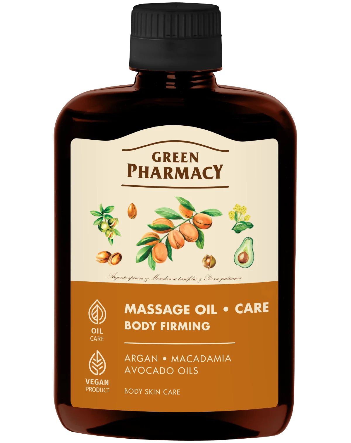 Ošetřující a masážní olej Green Pharmacy poskytuje intenzivní péči o pokožku těla. Spojení arganového, avokádového a makadamiového oleje pomáhá obnovit pevnost, pružnost a přirozenou krásu pokožky. Olej má příjemnou vůni, zajišťuje dokonalý skluz při masáži a maximální kontakt s pokožkou, čímž zvyšuje účinnost masážní procedury.