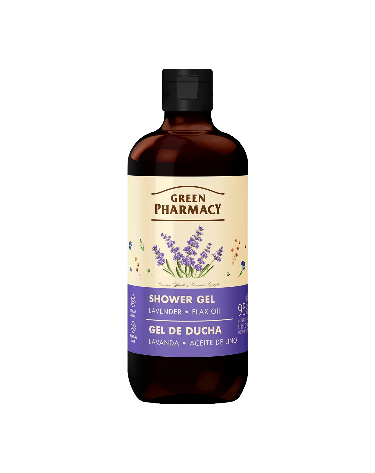 Sprchové gély značky Green Pharmacy sú produktom určeným na každodennú starostlivosť o pokožku. Vďaka prírodným extraktom a olejom dokonale čistia pokožku, dodávajú jej sviežosť a hydratáciu. Extrakt z levandule sa jemne a šetrne stará o pokožku. Zlepšuje mikrocirkuláciu, má antioxidačný účinok a stimuluje obnovu pokožky. Olej z ľanových semien poskytuje pokožke potrebné živiny, má zjemňujúci a omladzujúci účinok. Dermatologicky testované.